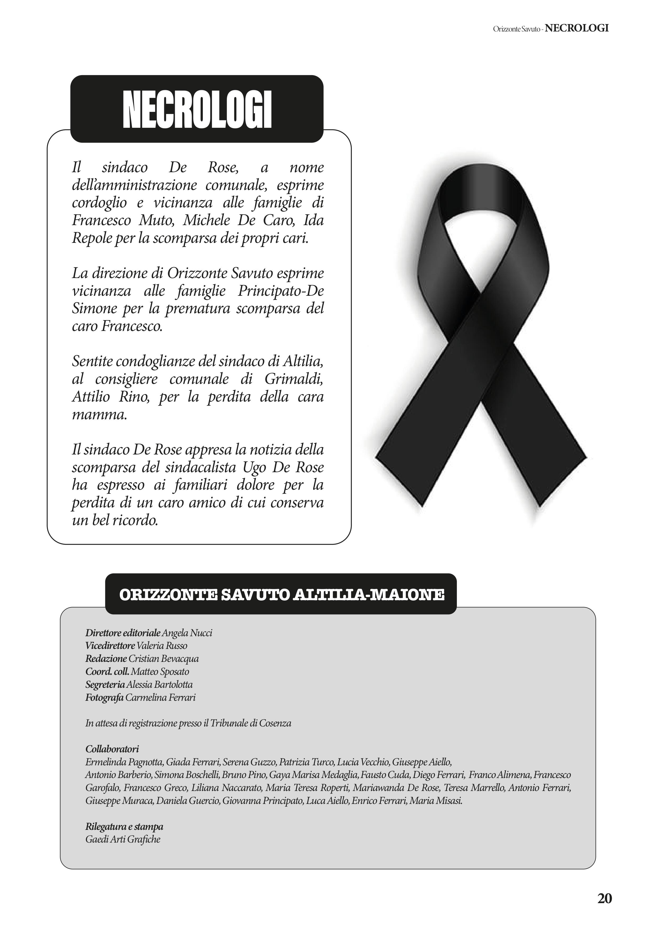 Il periodico di riferimento dei cittadini, per ascoltare suggerimenti e proposte costruttive nell’interesse di un vasto territorio del Savuto. Un giornale periodico che coinvolge i cittadini residenti all’estero, con l’obiettivo di mantenere attivo il collegamento con la propria terra nativa.