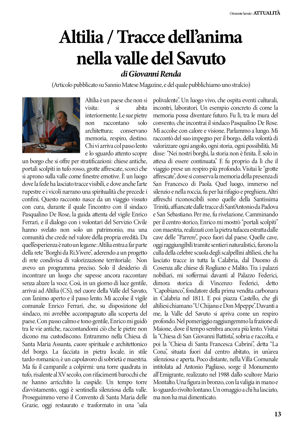 Il periodico di riferimento dei cittadini, per ascoltare suggerimenti e proposte costruttive nell’interesse di un vasto territorio del Savuto. Un giornale periodico che coinvolge i cittadini residenti all’estero, con l’obiettivo di mantenere attivo il collegamento con la propria terra nativa.