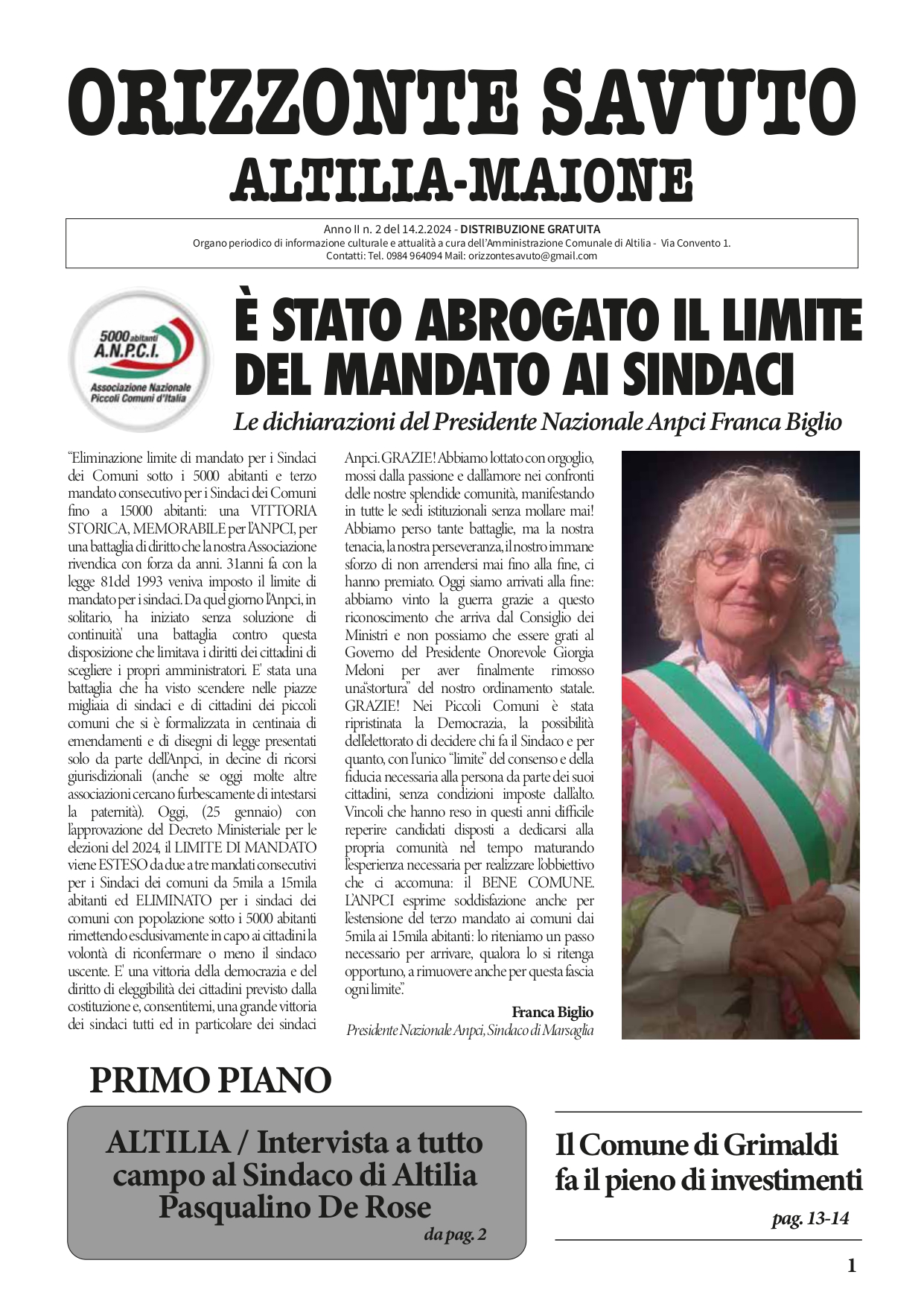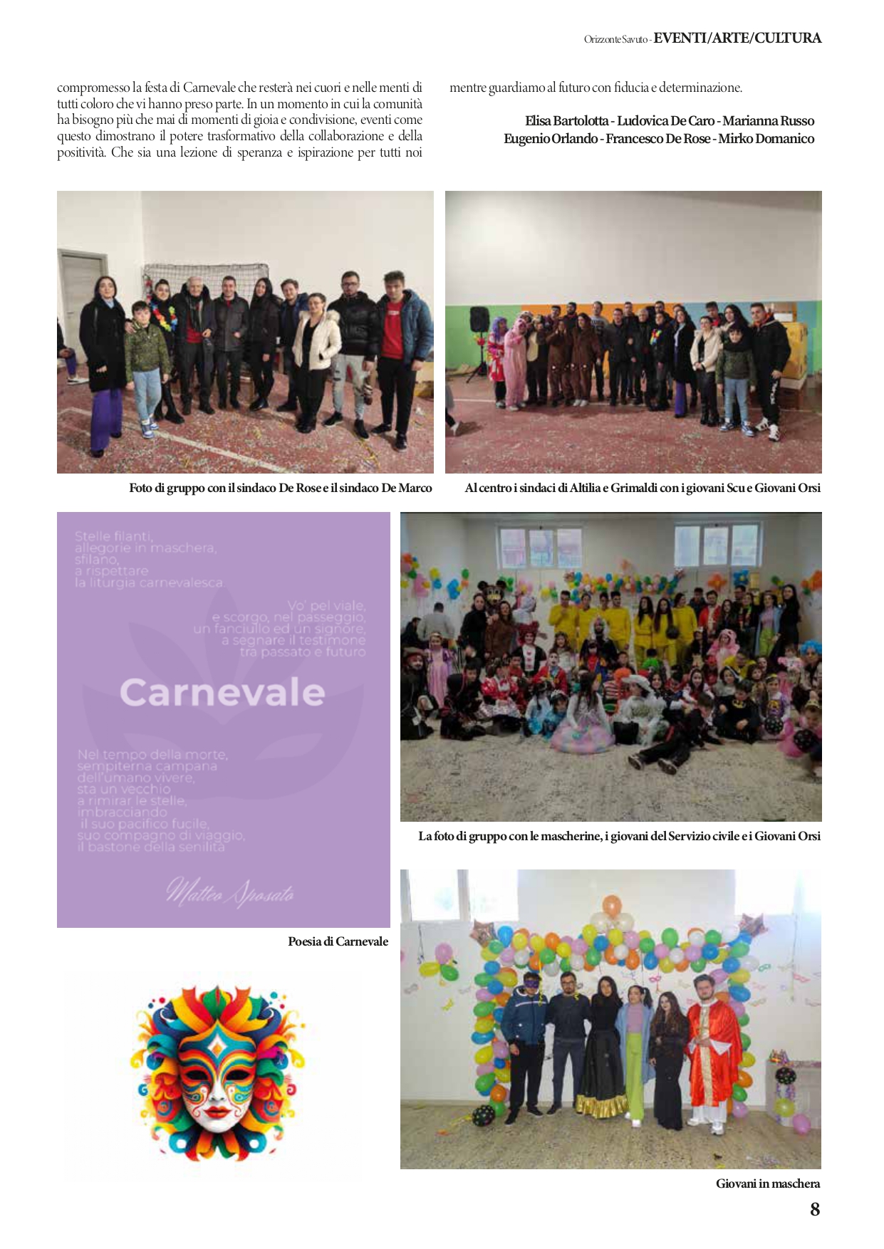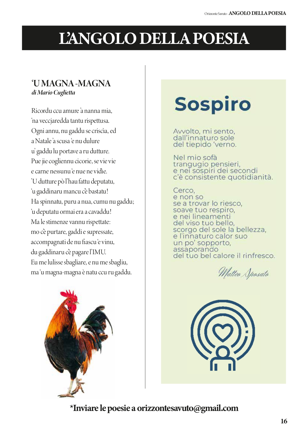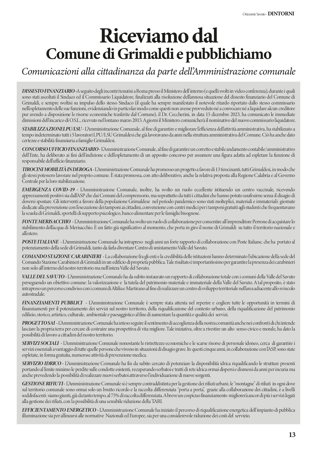 Il periodico di riferimento dei cittadini, per ascoltare suggerimenti e proposte costruttive nell’interesse di un vasto territorio del Savuto. Un giornale periodico che coinvolge i cittadini residenti all’estero, con l’obiettivo di mantenere attivo il collegamento con la propria terra nativa.