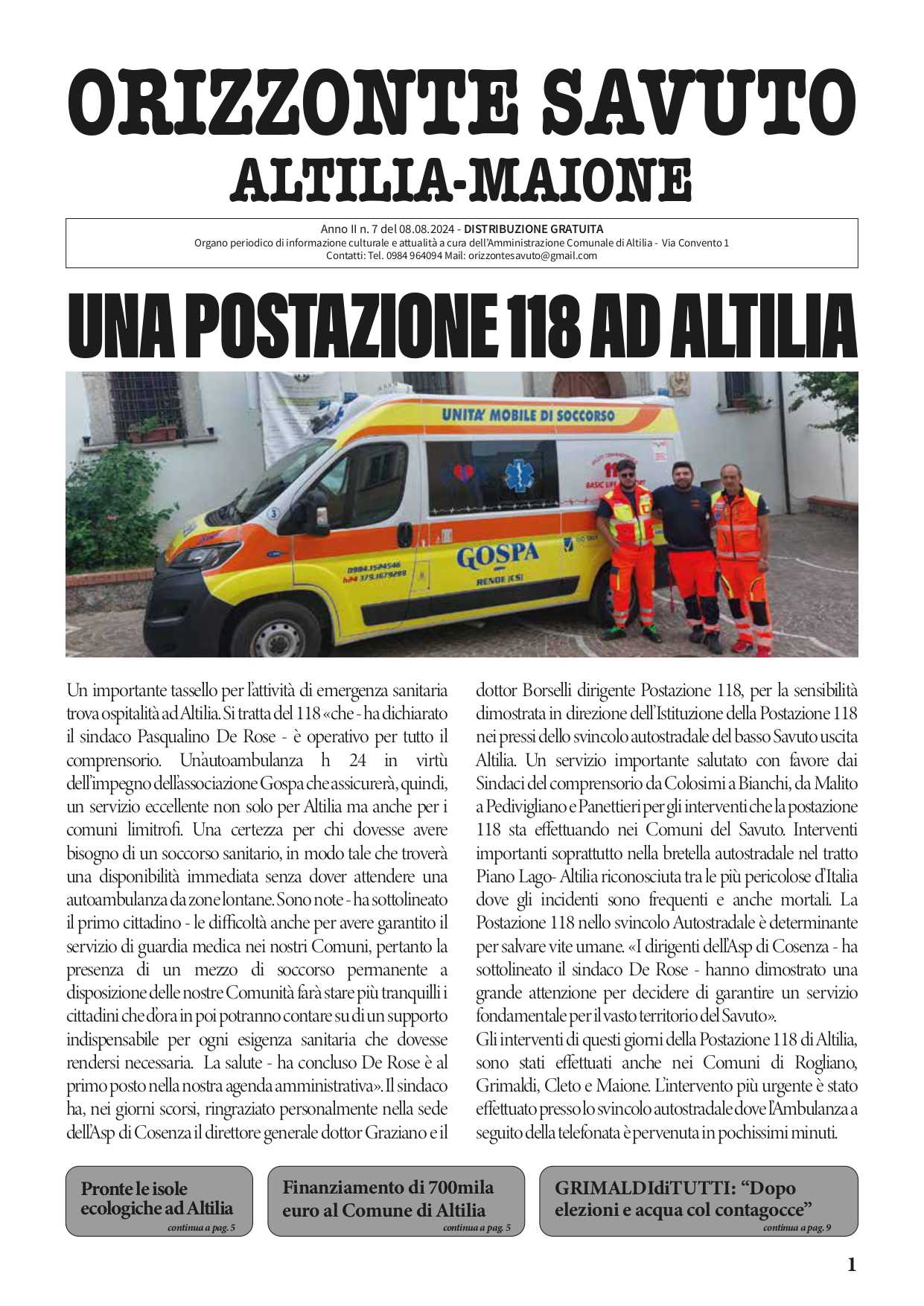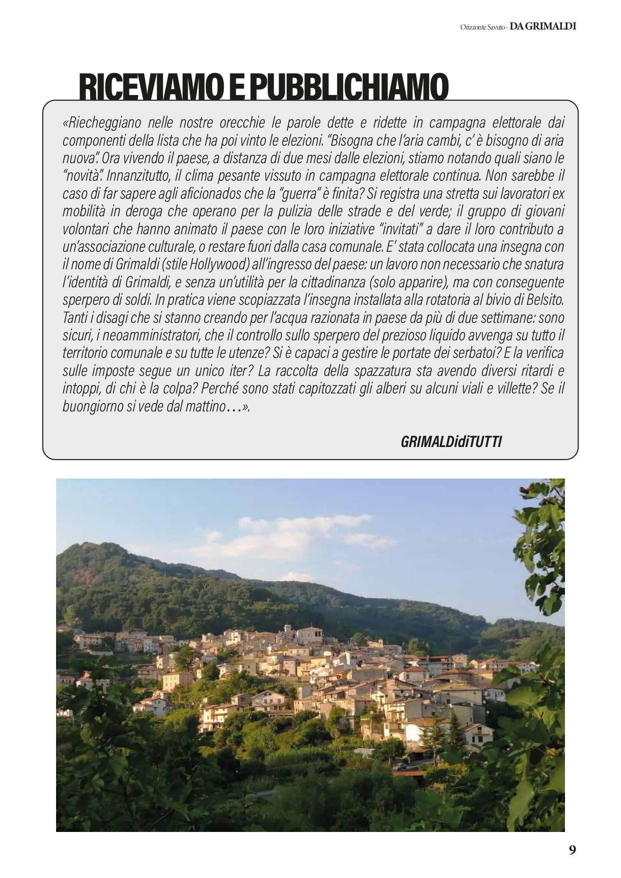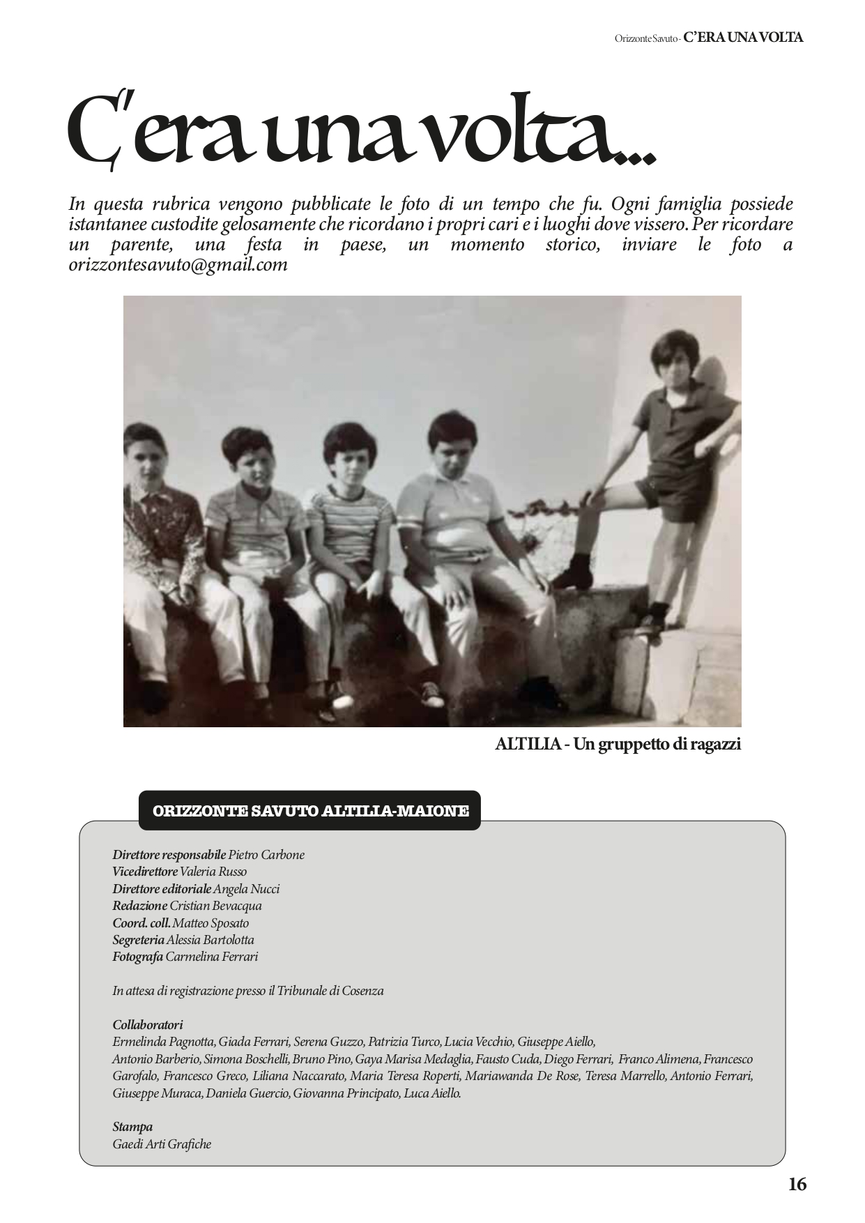Il periodico di riferimento dei cittadini, per ascoltare suggerimenti e proposte costruttive nell’interesse di un vasto territorio del Savuto. Un giornale periodico che coinvolge i cittadini residenti all’estero, con l’obiettivo di mantenere attivo il collegamento con la propria terra nativa.